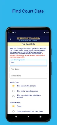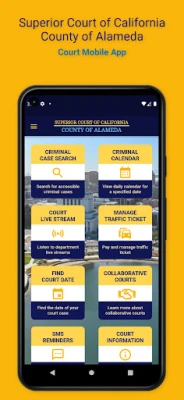 1. Search criminal cases via case number, party information or business name 2. View daily criminal court calendar and see scheduled hearing 3. Listen to department hearing live streams 4. Find court date from general civil, criminal, traffic, family law, and probate calendars 5. Manage/Pay traffic tickets 6. Collaborative Courts Referral 7. SMS Notification opt in 8. Find information on court locations and directory