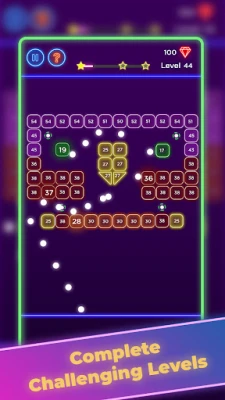 Bricks Breaker - Neon Bricks is a challenging Physics Puzzle Game. Swipe, Aim, Find the right path and release balls to break bricks!