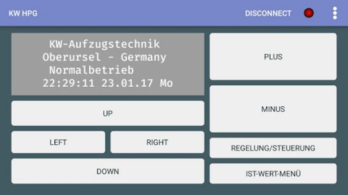The HPG app replaces the hand-held programmer HPG-60 for parameterizing the David-613 lift-controller. The app is connected via Wi-Fi to the integrated access point of the David-613 controller. With the assistance of the app, the whole lift-controller and the linked frequency inverter Goliath-90, can be parameterized. All parameters, status messages and error logs can be accessed and modified.