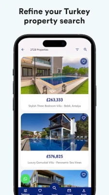 Browse our new Turkey Homes mobile application to search for your ideal property for sale in Turkey. Finding your ideal property in Turkey is now at your fingertips and very easy. Turkey Homes mobile app enables you to view apartments for sale in Turkey to exclusive Turkey villas, Turkish luxury penthouses, or perhaps a sea or nature view land plot for sale in Turkey to build your dream home in Turkey. Easy to scroll, save or share with your family and friends via Facebook, Whatsapp and many other social media platforms.