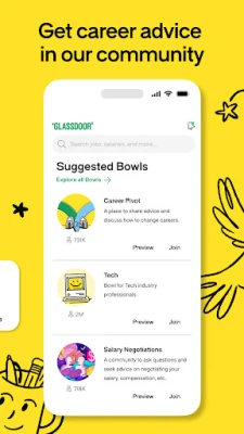 Find the right job faster with the Glassdoor app. Shortcut your search with our new AI-guided experience and get matched instantly to roles that are compatible with your goals. Get personalized insights on company and culture-fit based on real employee reviews. Stay linked in with coworkers and industry leaders to get career advice, resume and interview tips, and answers to tough questions through candid conversations in Bowls.