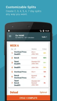With the Go HAM Pro - 531 Calculator, you can customize your workout and calculate your numbers based on your 1-RM lifts. Simply enter your 1RM's into the app to calculate your training maxes, and you're good to go.